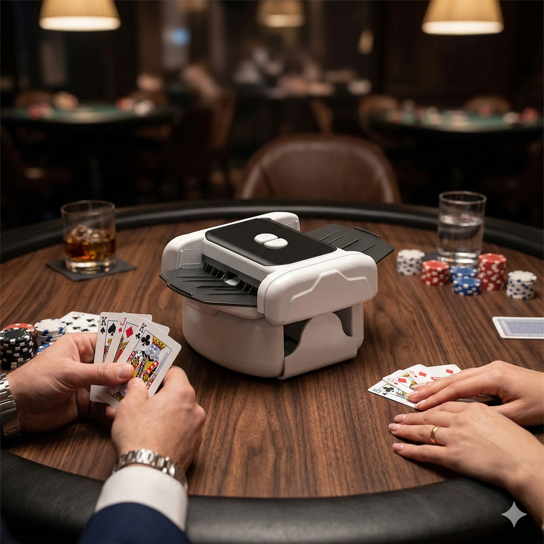 Maszyna tasuje karty w sposób całkowicie losowy, co eliminuje ryzyko „ustawionych” rozdań i zapewnia 100% fair play podczas każdej partii.